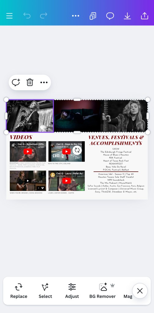 Screenshot of Canva’s mobile editor used during a quick press kit update.